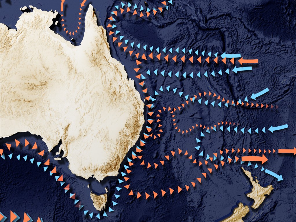 The East Australian Current is one of the four currents which play a critical role in shaping marine environmental conditions and climate on the continent. (CSIRO).